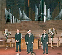 This is one of my favorite pictures from my wedding. Not because it is all that fabulous of a photo, but because it takes me back to the moments just before the doors at the back of the church opened for me to make my grand entrance. You see I was peeking through the crack in the door watching Rob get into place at the front of the church. I remember thinking how handsome he looked in his tux. He could hardly contain his excitement as he waited in front of our friends and family. I found out later that he had been up since 5 or 6 AM anxiously awaiting the ceremony and after spending some time praying in the parking lot of the church, drove up and down the freeway as he listened to loud music (apparently he couldn't sit still). As the doors opened for me I watched my groom as his breath was taken from him and he literally took a step backward. I had never before felt more beautiful as I did when I saw his reaction to seeing me in wedding gown for the first time.For many people their wedding day was the best day of their life. A day they long to repeat. And while it was an incredible day that I will never forget and will always treasure, it was after all just a day. One day in a lifetime of love together. I said earlier that I had never felt more beautiful as I did that day, but I have been blessed to feel that way over and over again since then because my groom, 8 years later, still sees me that way. The Word tells husbands to love their wives as Christ loves the church. As my husband has loved me unconditionally he has taught me about Christ's love, Rob's love for me is a picture of Christ's love. I thank God each day for this man He gave to me.